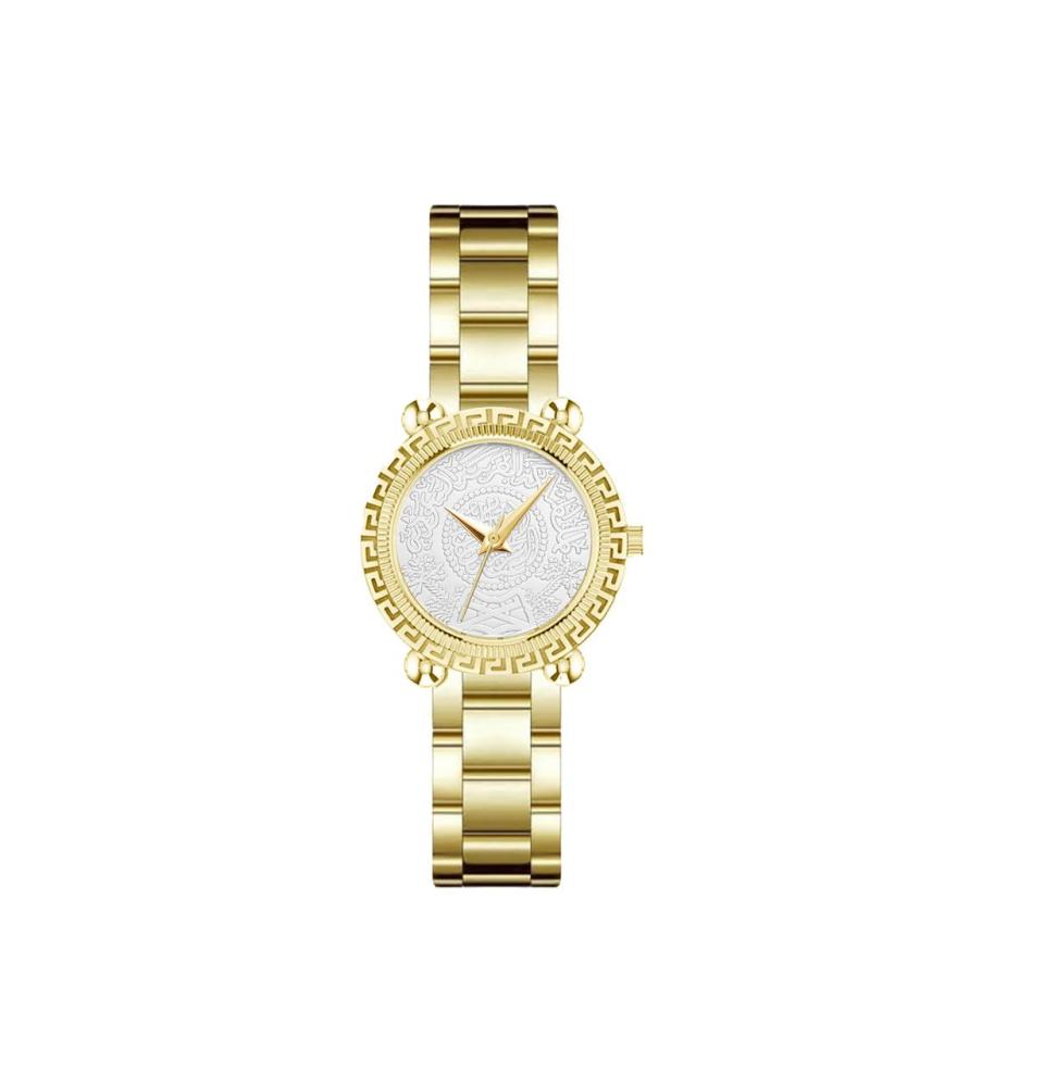 - نوع المنتج : ساعة نسائية سير و اطار ذهبي ميناء فضي