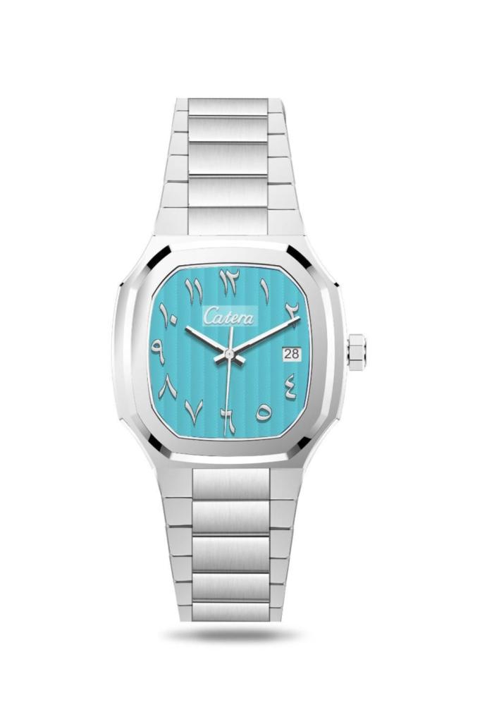 ساعة رجالية بسير و اطار فضي ميناء سماوي