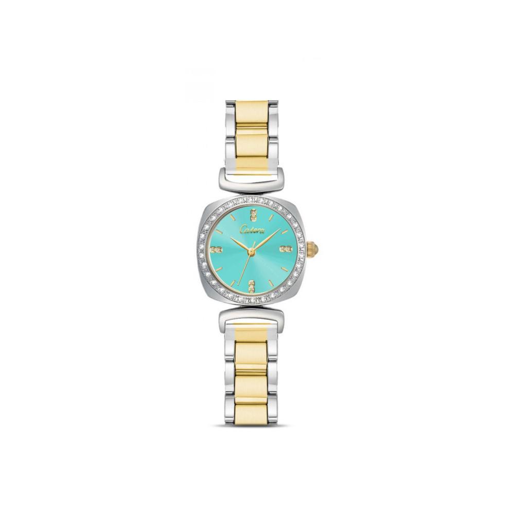 ساعة نسائية سير و اطار فضي ذهبي ميناء سماوي