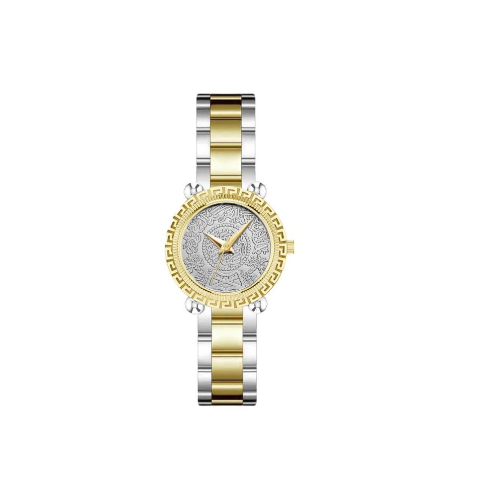 - نوع المنتج : ساعة نسائية سير و اطار فضي ذهبي ميناء فضي