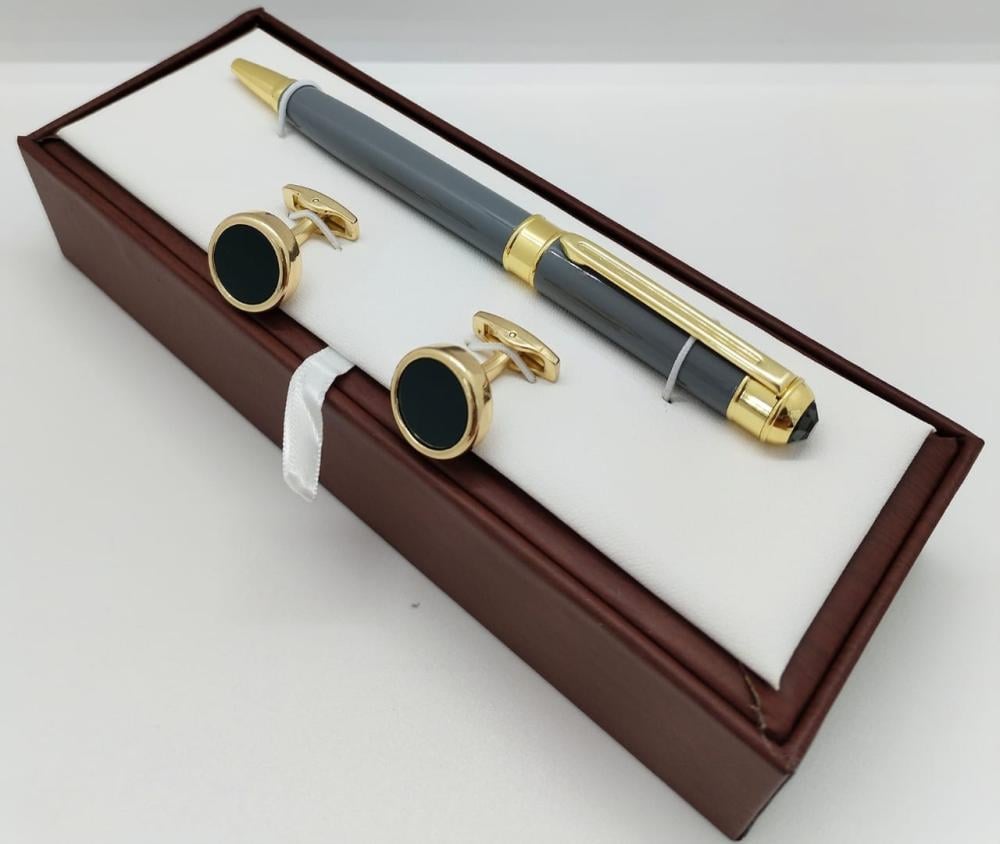- نوع المنتج: طقم قلم وكبك ذهبي رصاصي