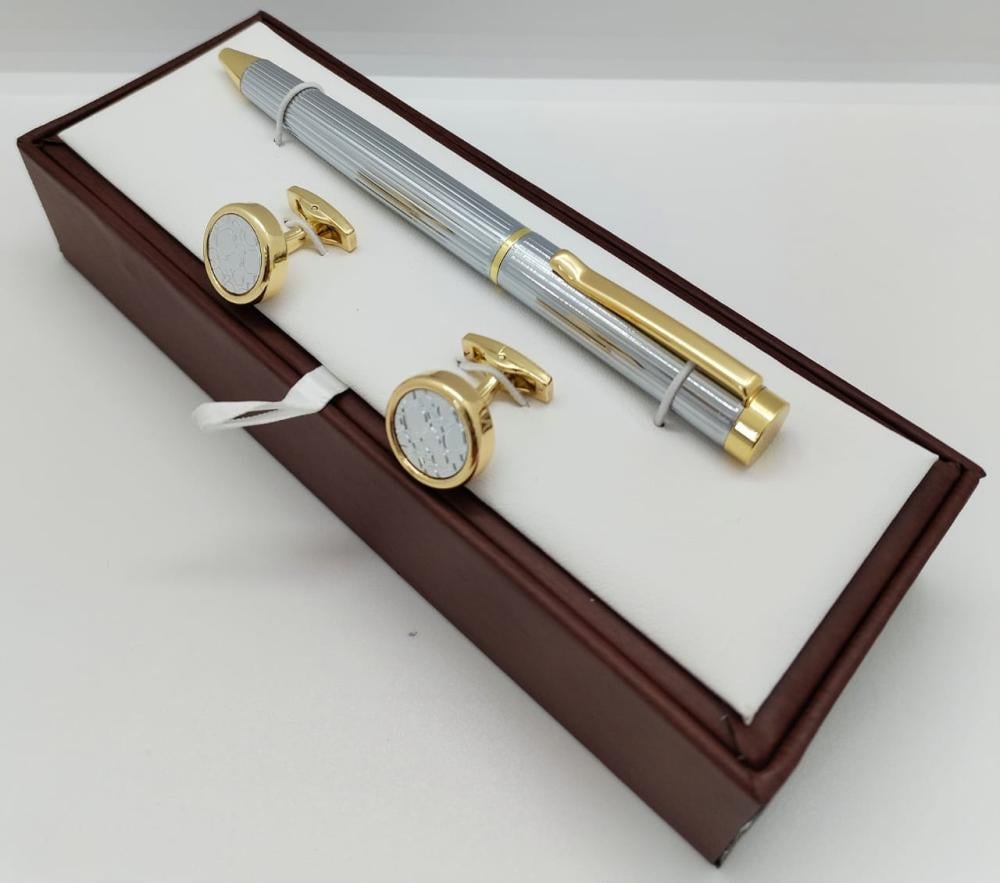 اليوم نقدّم لكم طقم قلم وكبك مميز، اللي يعتبر الاختيار المثالي لكل شخص يحب يبرز أناقته ويضيف لمسة من التميّز على مظهره. سواءً كنت في مناسبة رسمية أو اجتماع عمل، هذا الطقم بيكون رفيقك المثالي!