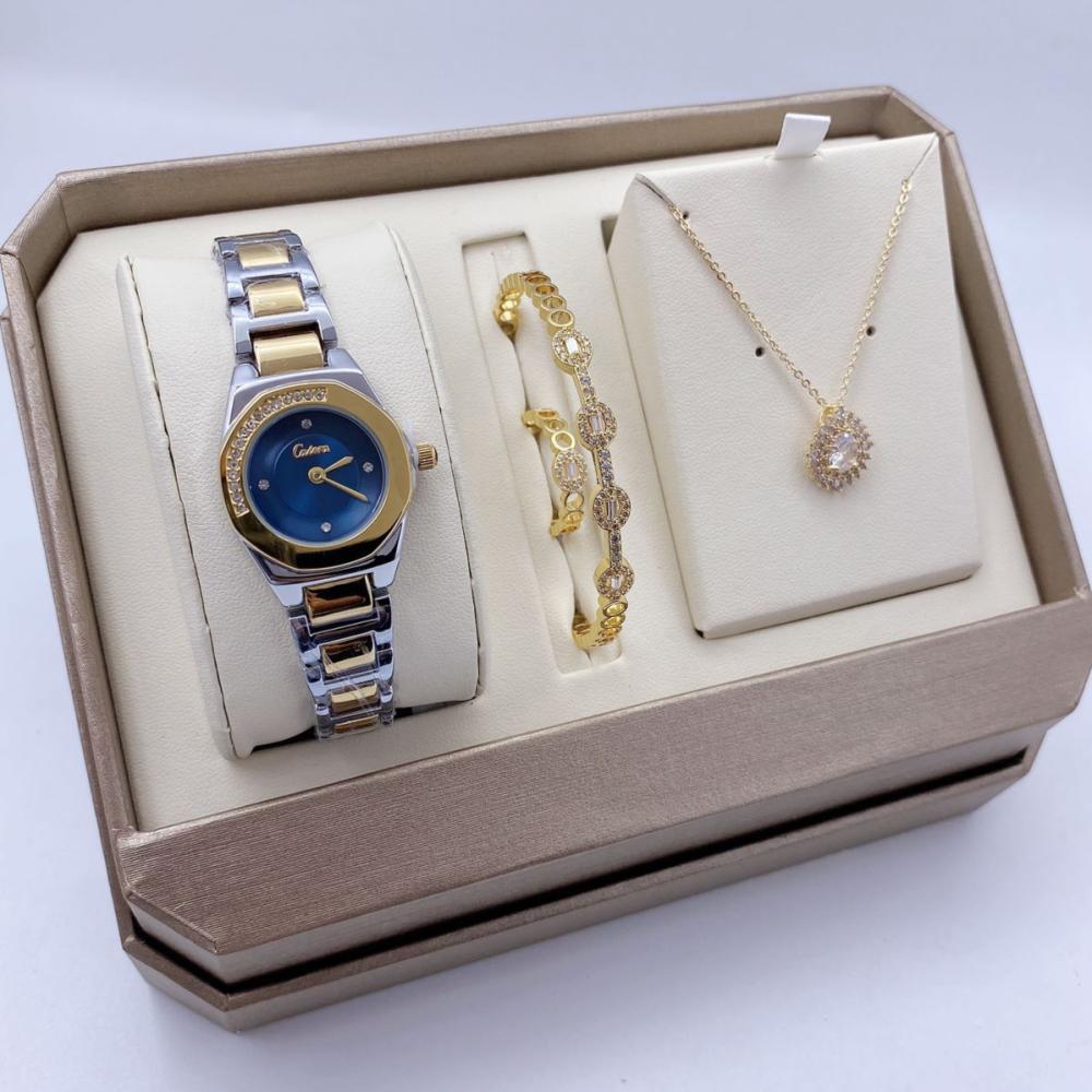 طقم هدايا نسائية فضي ذهبي ميناء ازرق